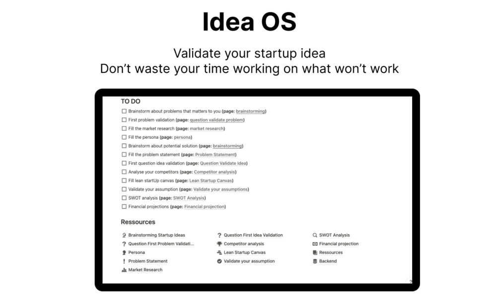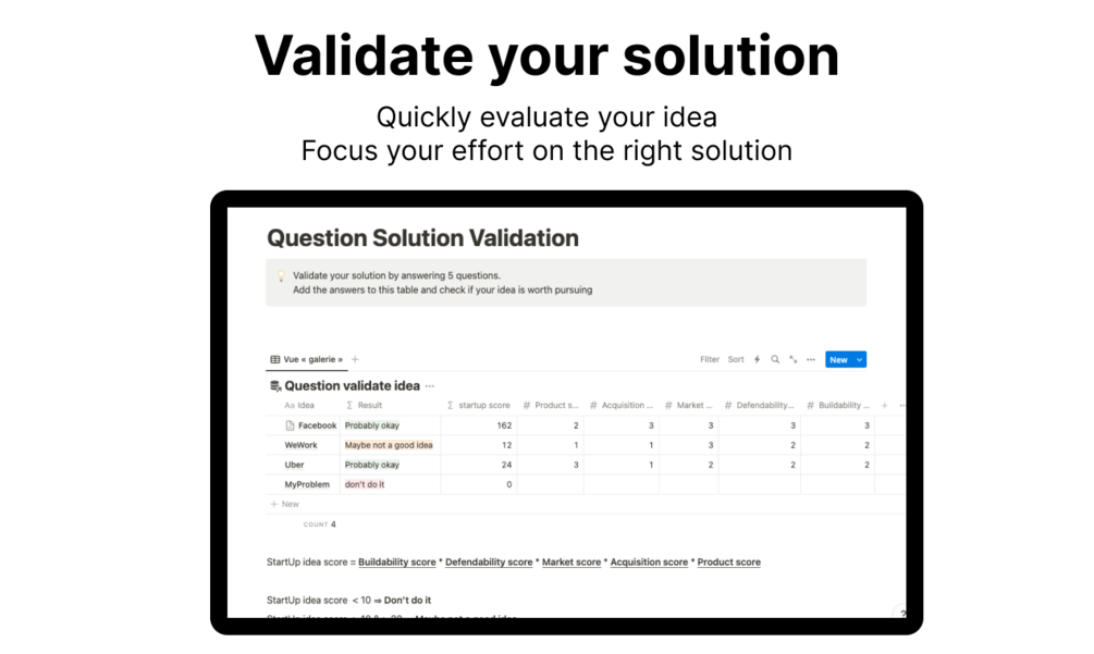 Struggling to Validate your Idea ? Meet your new partner: The Ultimate StartUp Idea Validation Notion Template, powered by Startup Creator.